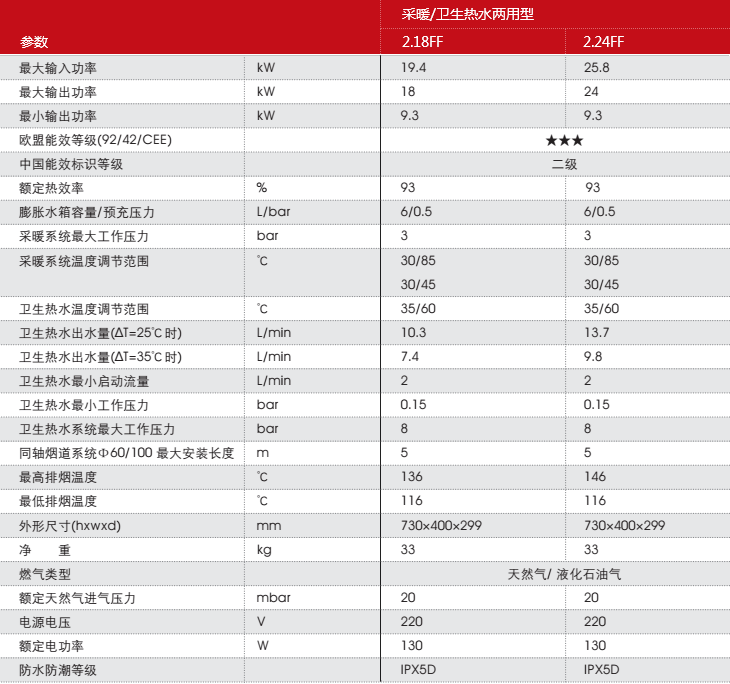 · 兩種采暖溫度調(diào)節(jié)范圍:30/85℃,30/45℃